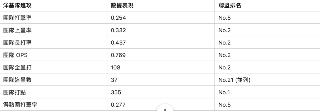 ⚾️ 紐約洋基團隊進攻表現 ⚾️