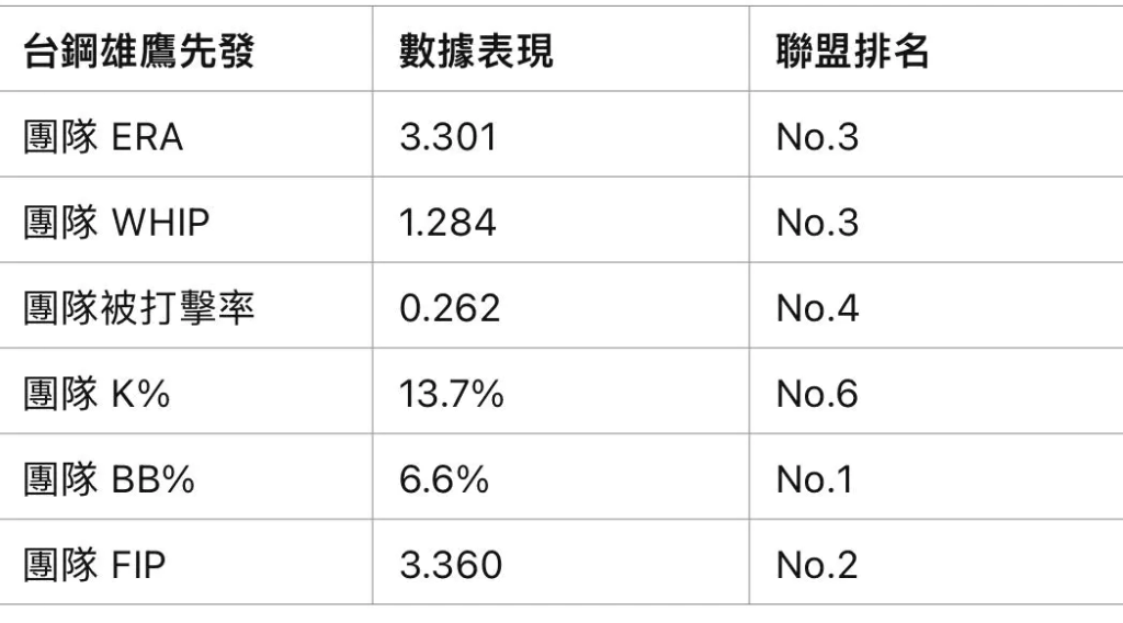 ⚾️ 台鋼雄鷹團隊先發投手表現 ⚾️