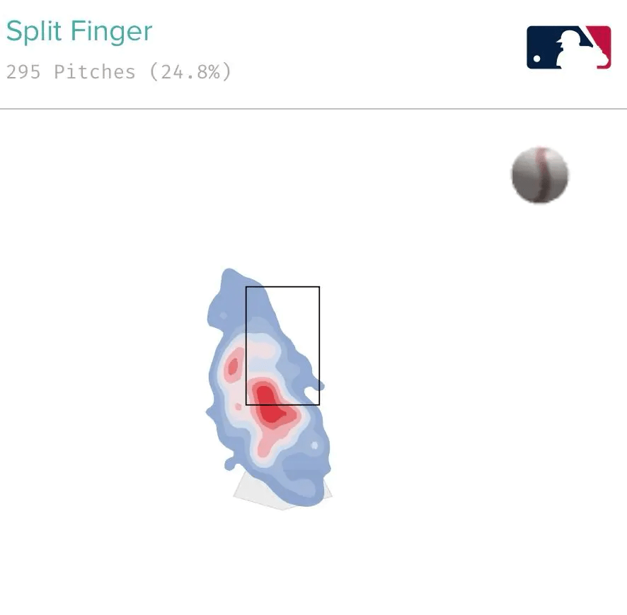 整體來說,山本由伸的快速指叉球在球速方面表現相當不錯,均速超越聯盟平均約3-4 mph。此外,山本由伸在投這項球路時,能夠將球普遍「精準」地壓在好球帶下緣,使得對方打者在面對此球路時的進攻鎖定相當困難。
