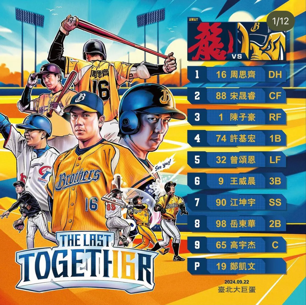 至於中信兄弟的打序,雖然與第一場比賽相比做了一些調整,但變動幅度不大。這些調整主要是基於近期球員的狀態,尤其是昨天比賽中的表現來進行的調度。然而,這場引退賽的絕對主角——周思齊,依然被安排擔任第一棒,並且平野惠一總教練賽前也特別表示:「今天同樣會讓他打好打滿。」這一安排讓球迷們有更多機會見證周思齊在場上的最後演出,也讓這場比賽充滿了情感與紀念意義。